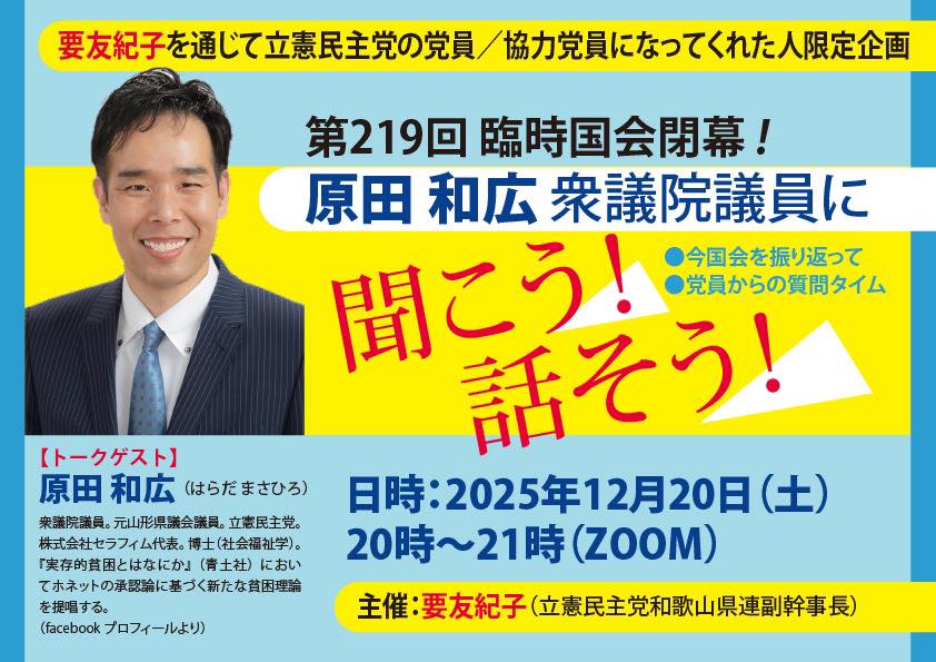 原田まさひろ衆議院議員と党員のオンライントーク企画をしました